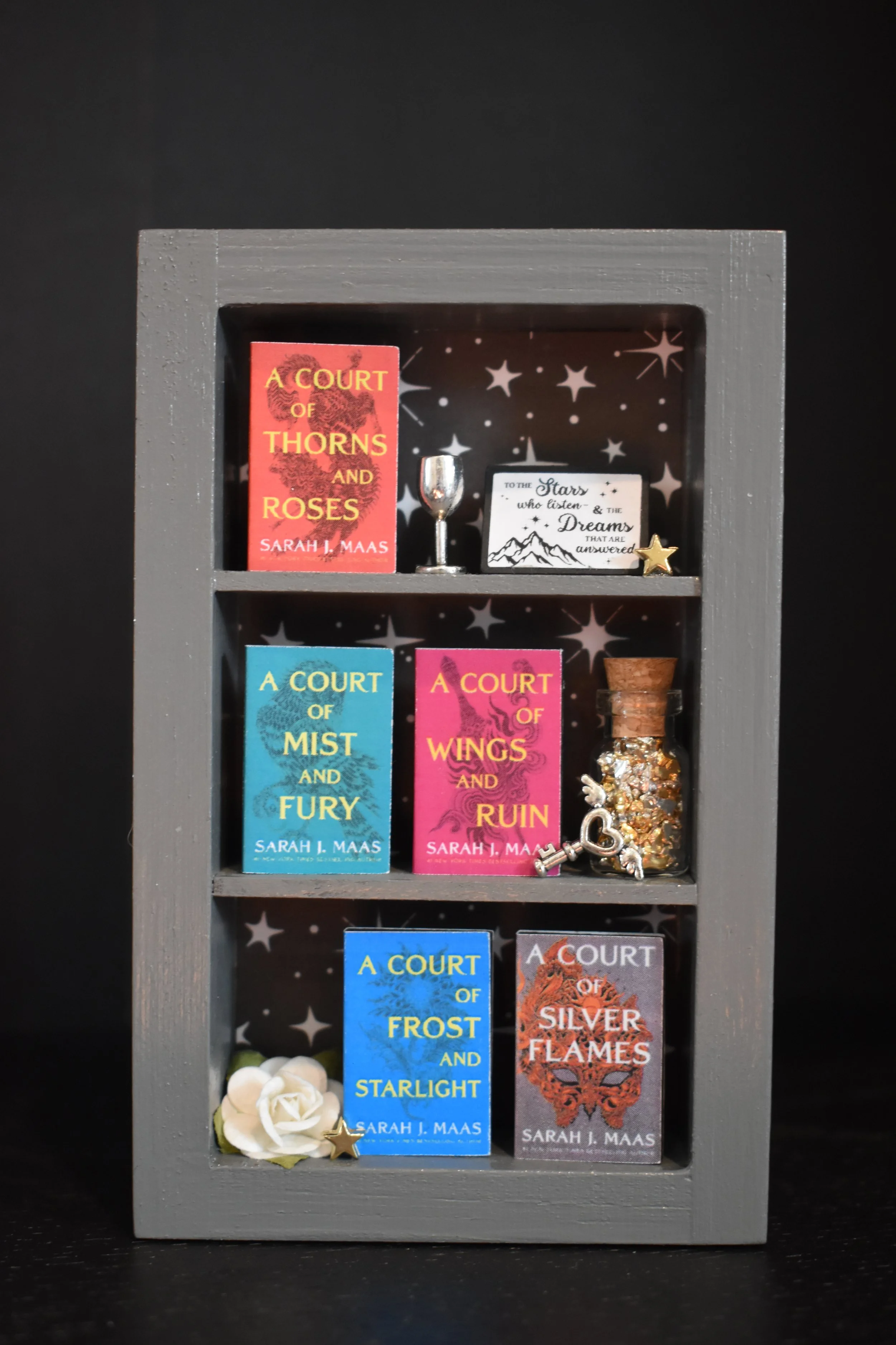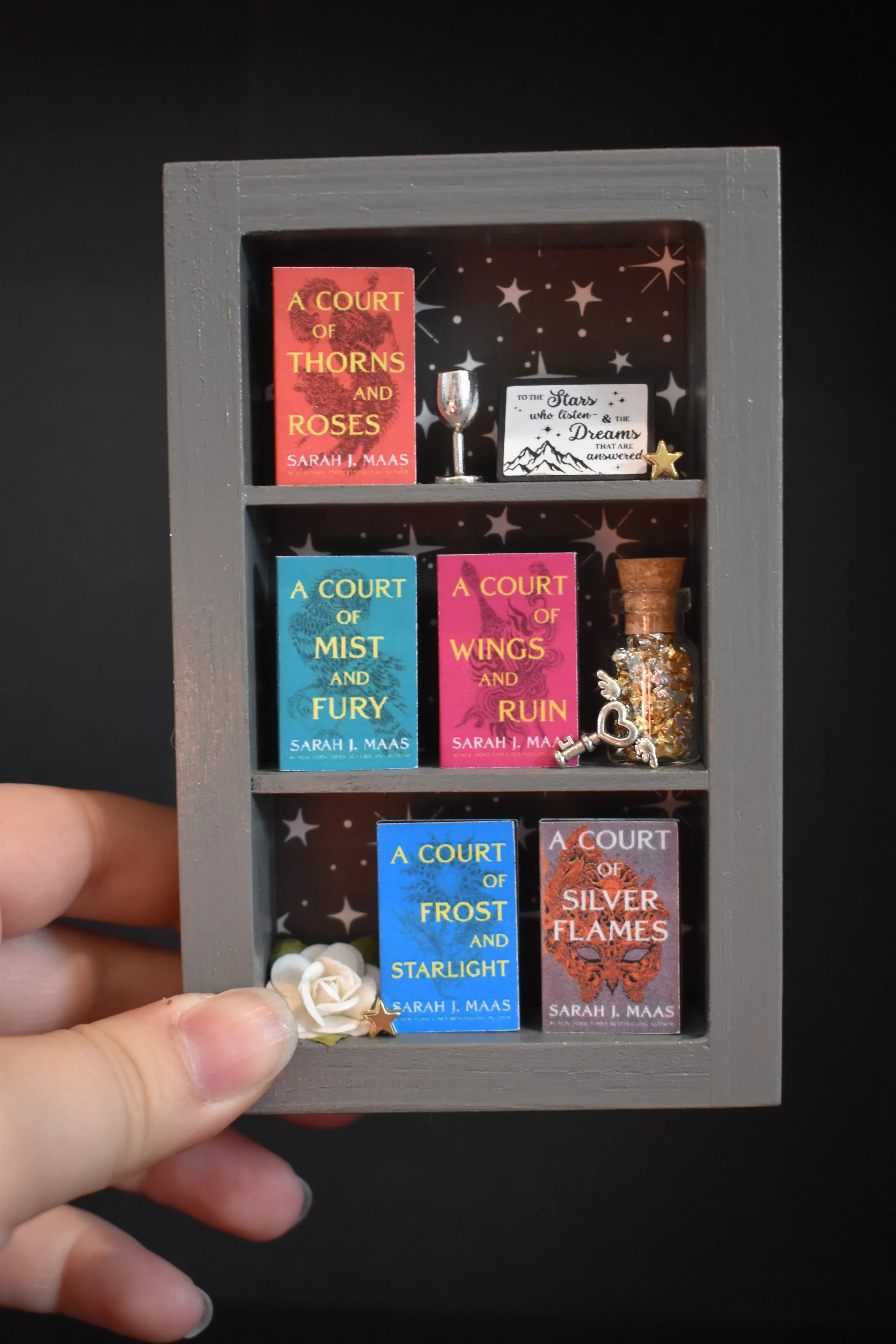 This tiny bookshelf features books by NYTimes bestselling author, Cassandra Clare ⚔️