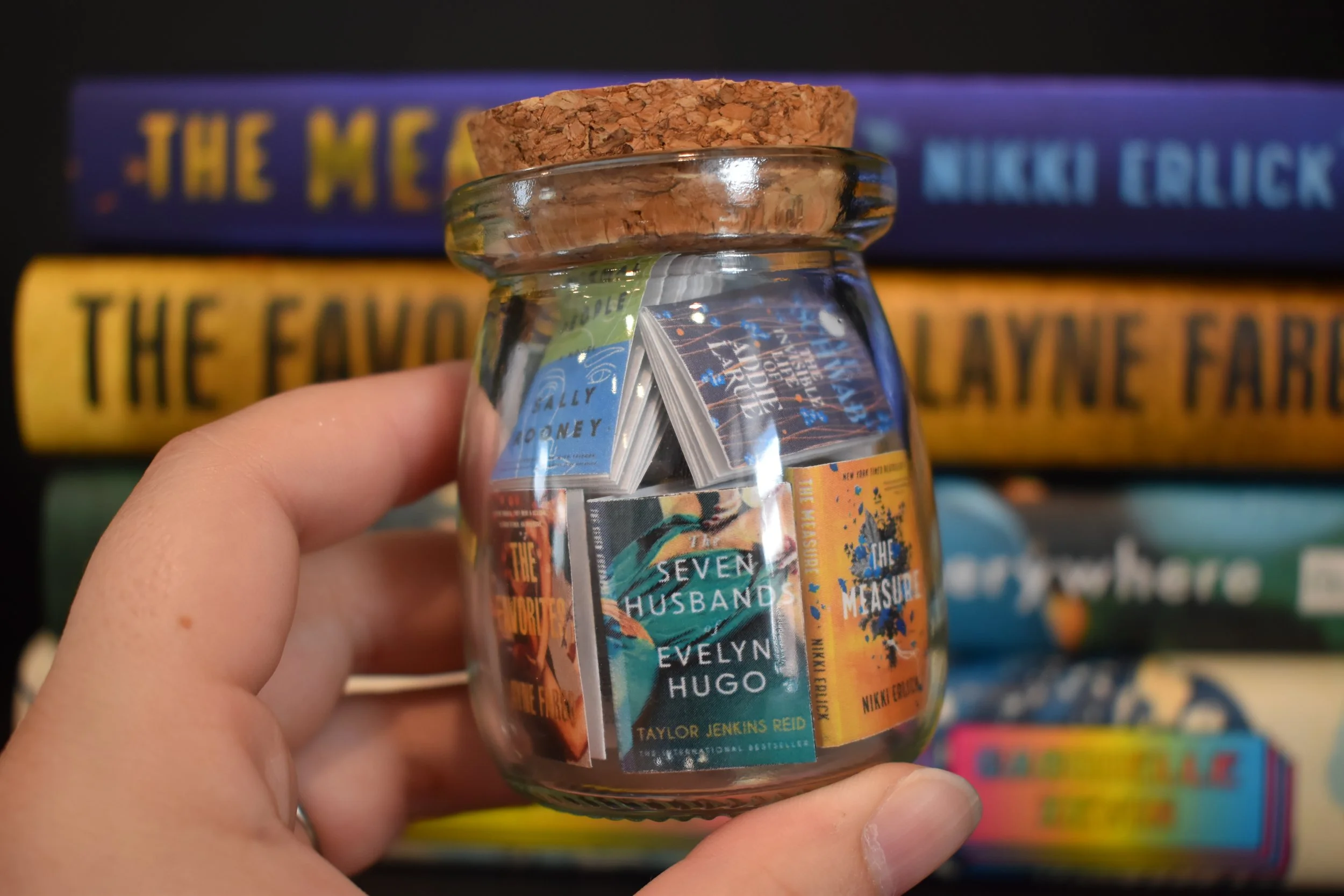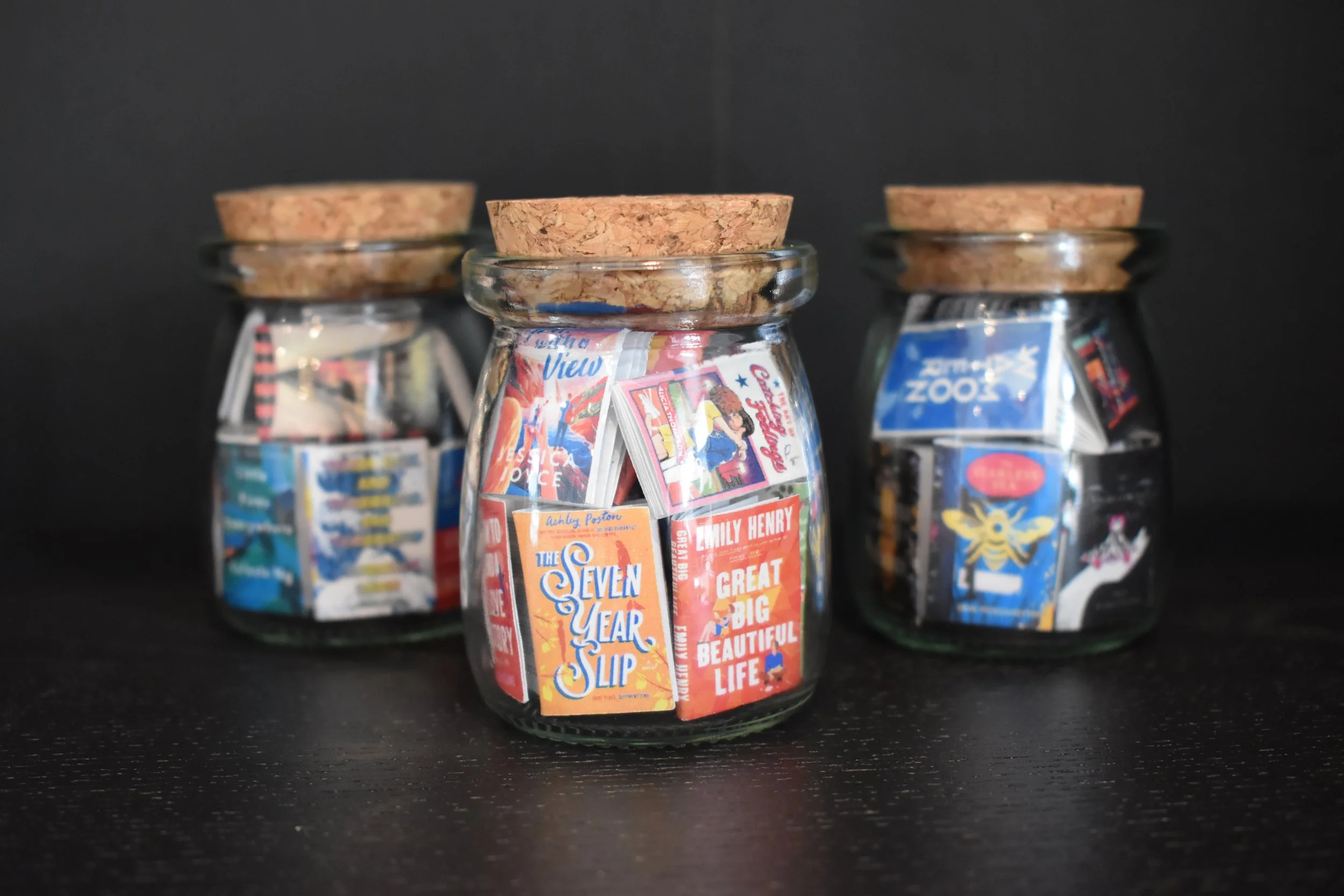 Categories: Select a Category CUSTOM SHELVES JARS LIBRARY CARTS TINY SHELVES SHELVES MINIATURE SQUARE SHELVES LITTLE BOX LIBRARIES JARS BOOK STACKS SINGLES BOOK JARS MINIBILLS ORNAMENTS BROADWAY FILM/TV STICKERS & GIFT CARD JARS / BOOK JARS CUSTOM LIBRARY CARTS TINY SHELVES SHELVES JARS BOOK STACKS SINGLES BOOK JARS MINIBILLS ORNAMENTS BROADWAY FILM/TV STICKERS & GIFT CARD Miniature Book in a Jar $20.00 Add To Cart Added! Little Jar of Miniature Books - Custom $35.00 Sold Out Sold Out Added! Little Jar of Miniature Books - Pre-Filled $25.00 Abby Jimenez Agatha Christie Ali Hazelwood Carl Hiaasen Dune series Emily Henry Erin Morgenstern Game of Thrones Hitchhiker’s Guide to the Galaxy John Green Kurt Vonnegut Leigh Bardugo Lord of the Rings The Lunar Chronicles Mortal Instruments Nancy Drew Percy Jackson Rachel Lynn Solomon Red Rising series The Selection series Sitcom books Stephanie Garber Stephen King Truly Devious Add To Cart Added! Small Jar of Custom Miniature Books $45.00 Add To Cart Added!