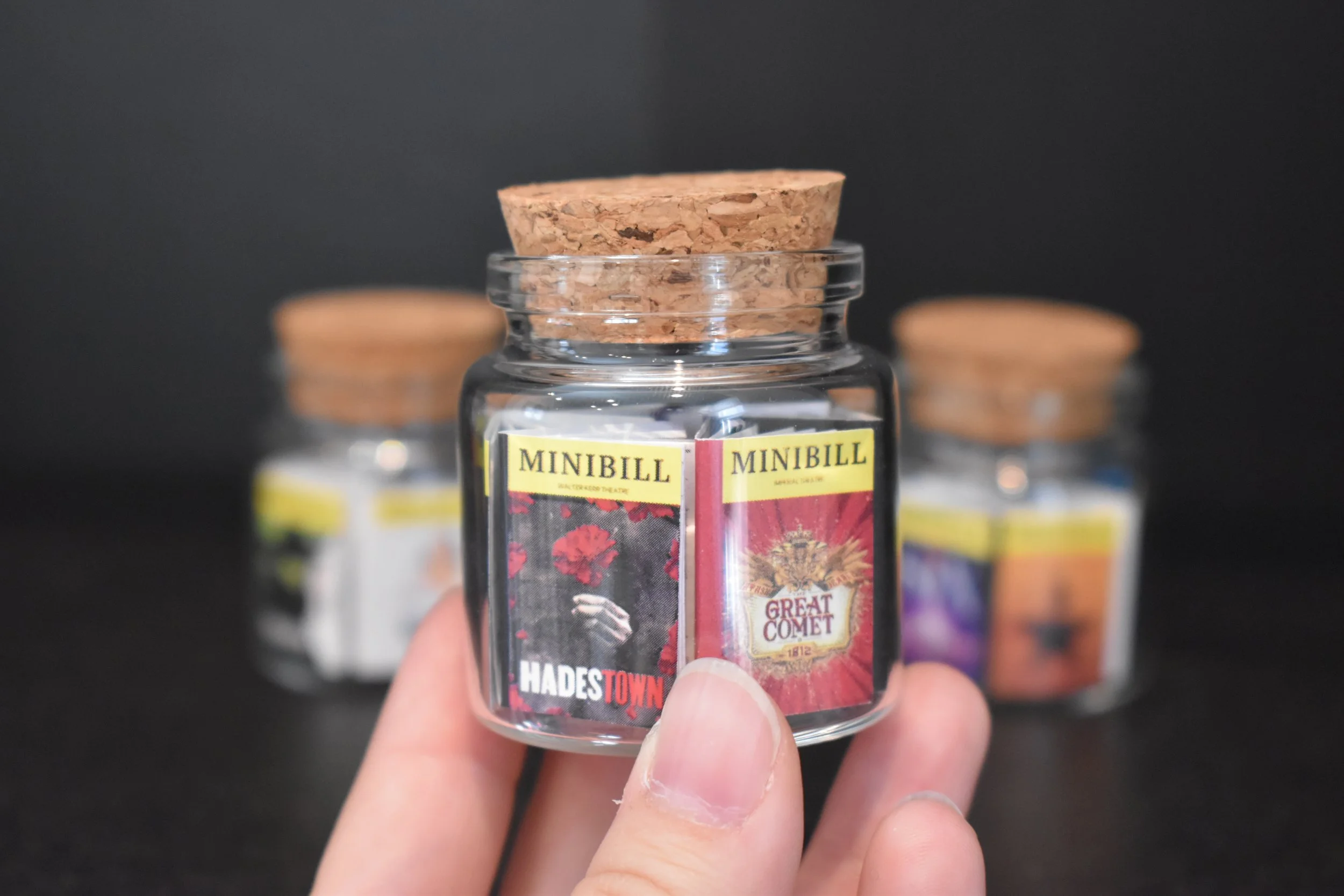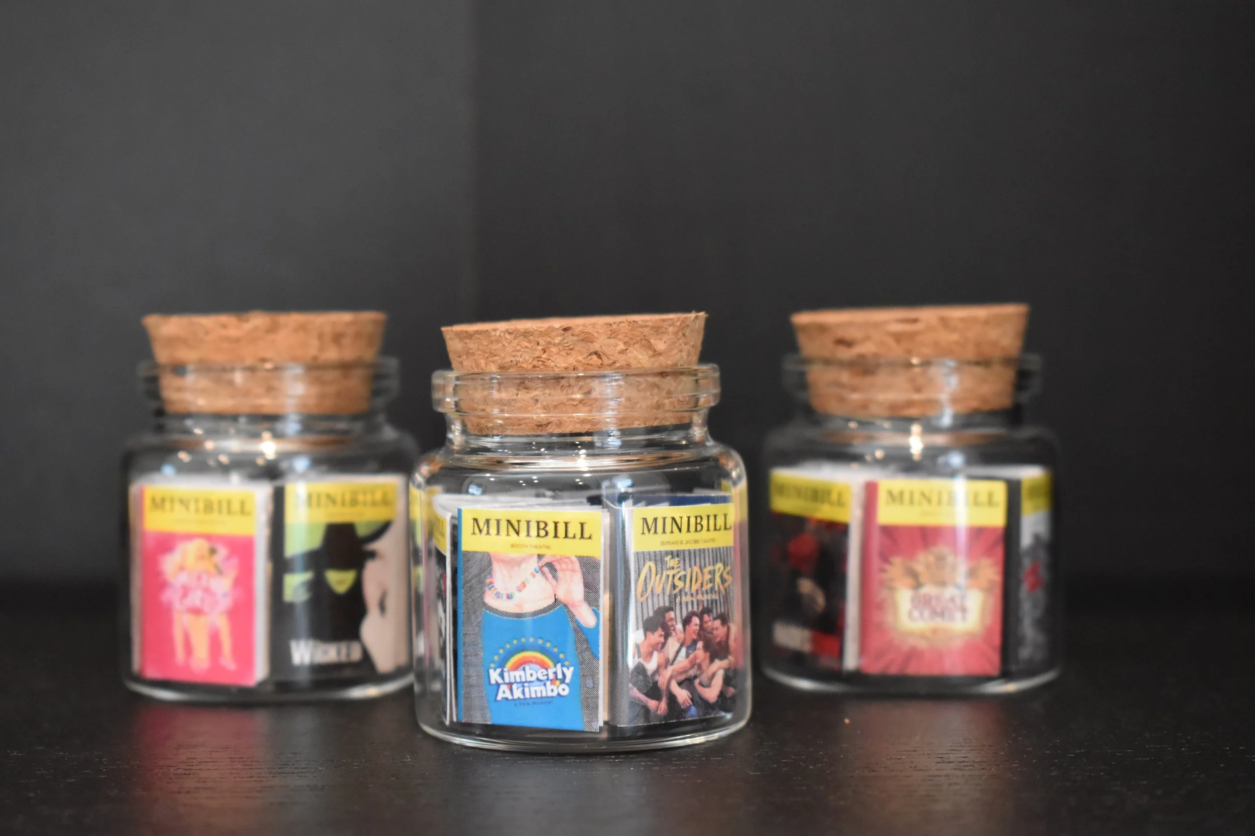 Each jar contains 34-36 Broadway Minibills and can be customized to feature your favorite shows.