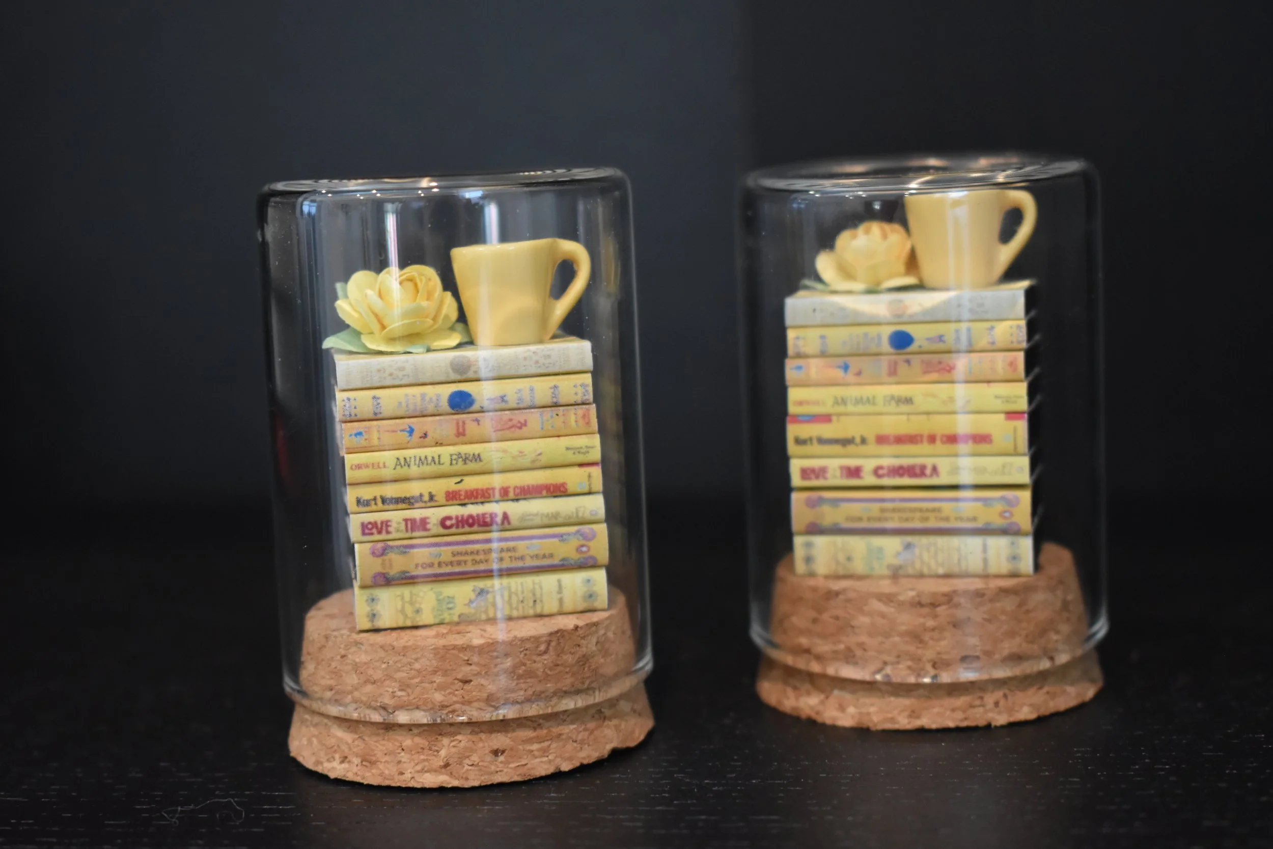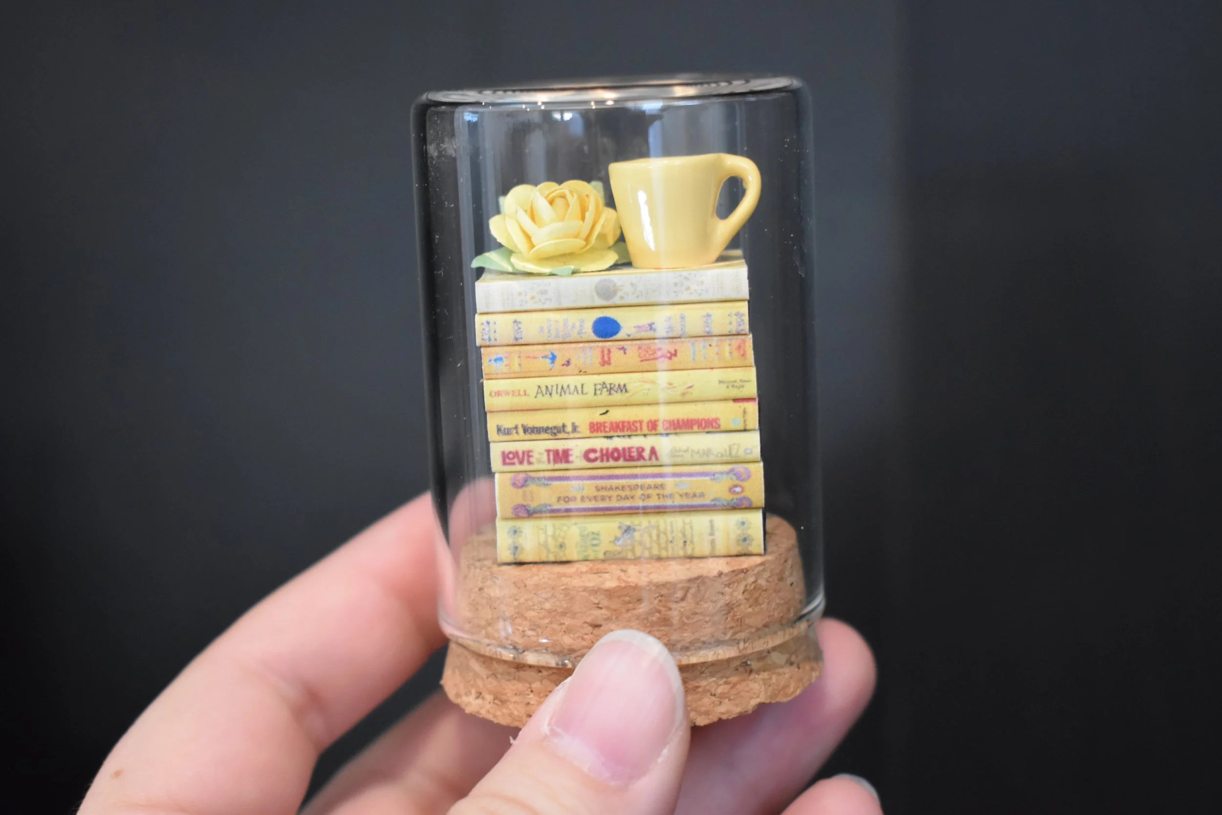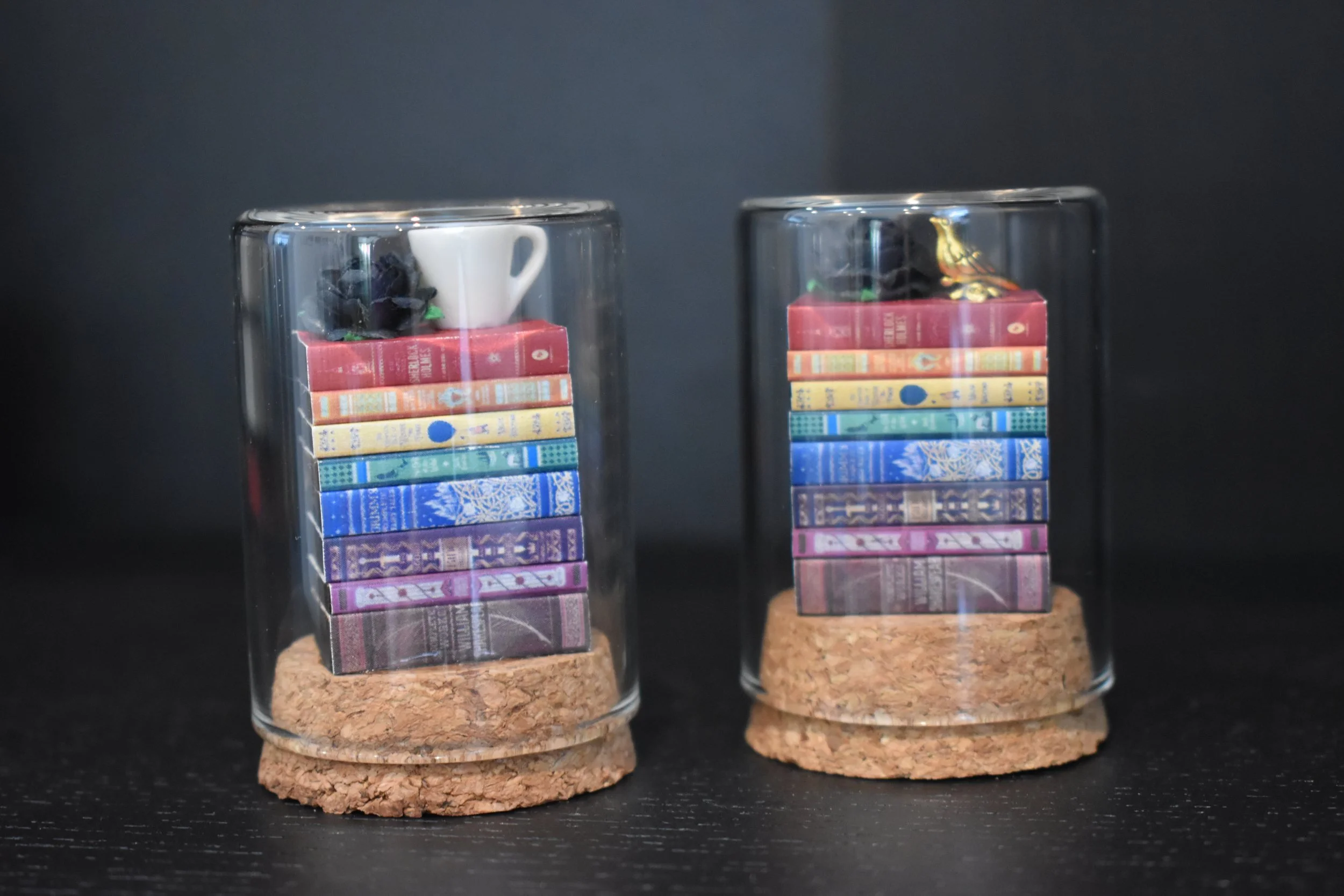 Jars of mini books are the perfect decor for your shelf or desk. Each jar comes complete with a stack of all eight books in Stephen King’s dark western fantasy series.
