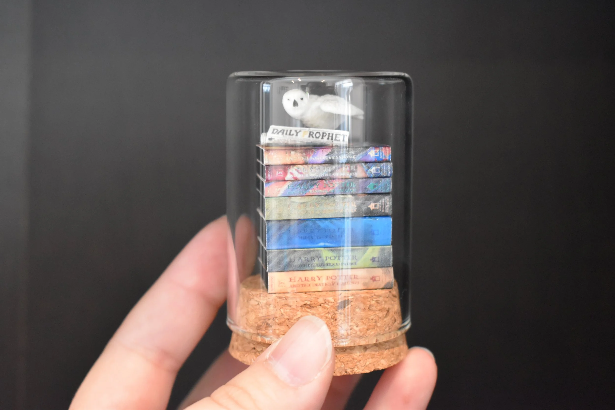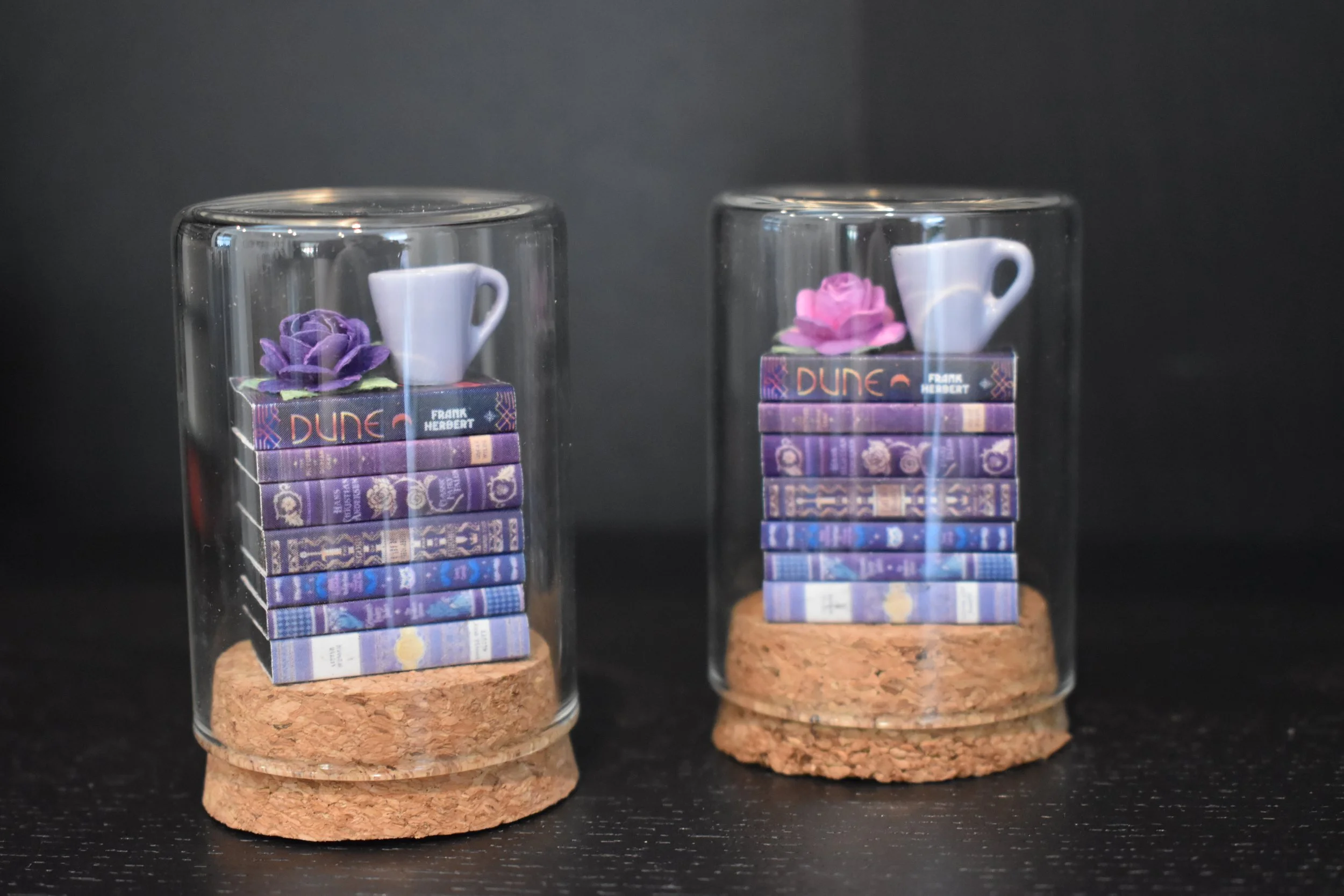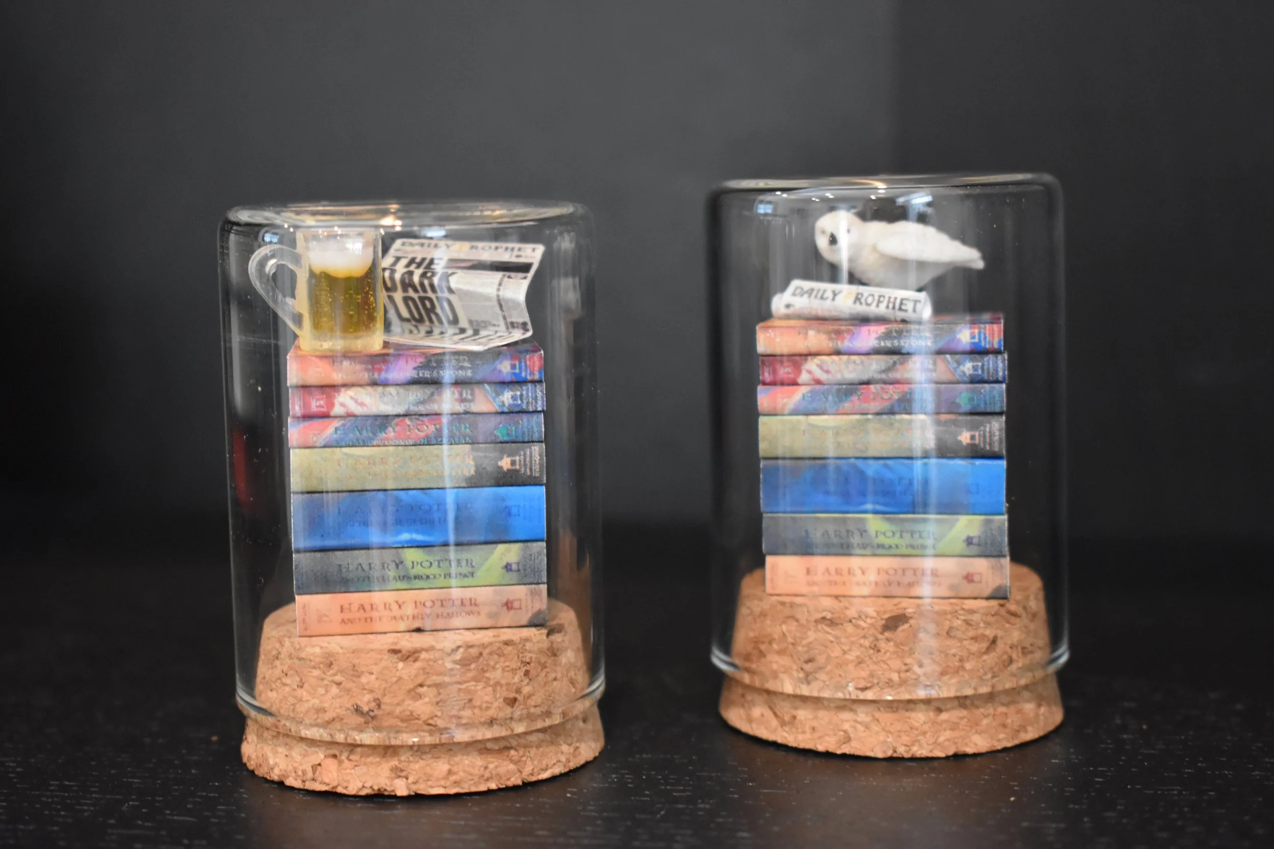 Jars of mini books are the perfect decor for your shelf or desk. Each jar comes complete with a stack of all eight books in Stephen King’s dark western fantasy series.